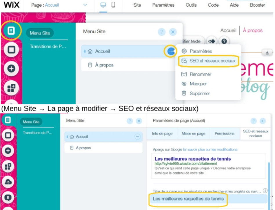Explication de la méthode pour changer le titre des pages avec Wix (référencement : balise title).