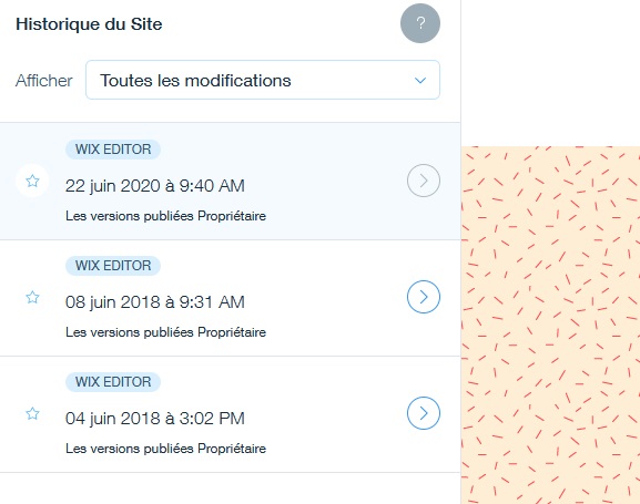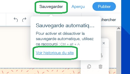 Pour cela, vous allez devoir consulter l’historique des sauvegardes de vos modifications Wix en suivant ces captures d’écran :